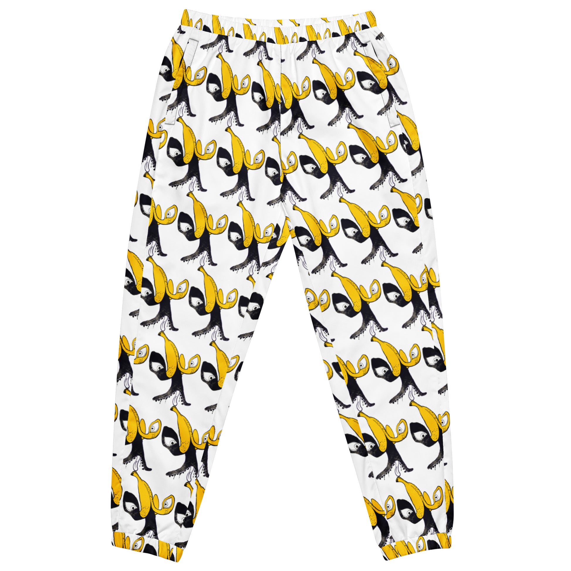 This awesome unisex Banana face track pants are your new go-to piece for working out or styling a streetwear outfit. The water-resistant, lightweight fabric and mesh lining provide comfort, while elastic ankle cuffs will make it easy for you to show off your kicks. Style it with a windbreaker for a complete look and feel.